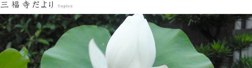 ハス研究の世界的権威だった大賀一郎博士から、現善光寺大僧正の高築堯宥(たかつきぎょうゆう)住職が昭和38年に二千年ハスの根茎を分けてもらって大切に育て、昭和40年8月15日早朝、見事にピンクの大輪の花を咲かせたそうです。三福寺ではこの大賀ハスをわけてもらい大切に育てています。例年の花の見頃は7月中旬から8月下旬となっております。